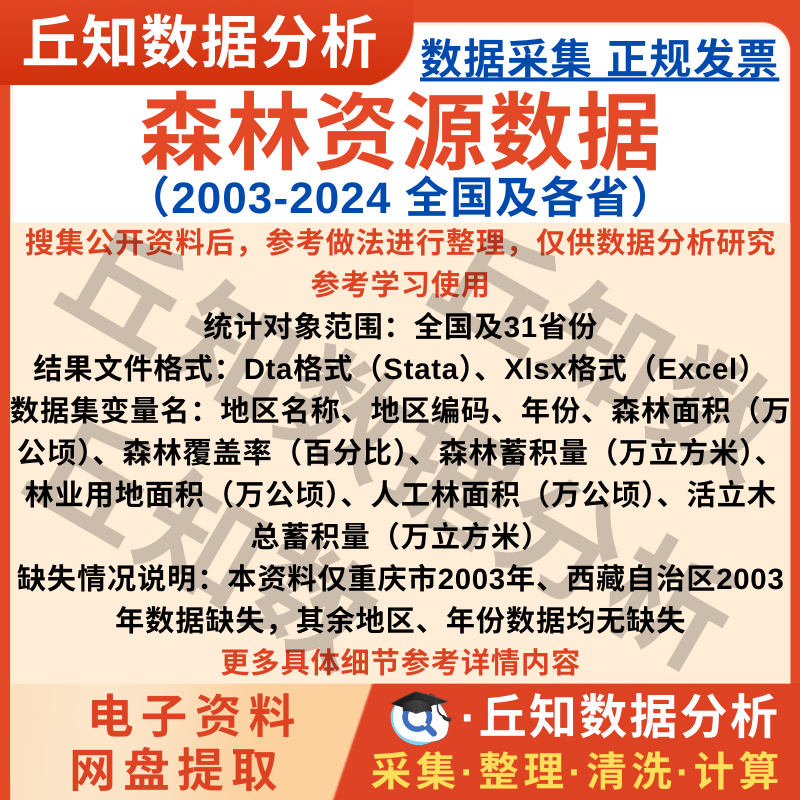 【普通数据】全国及各省森林资源数据2024-2003年面积覆盖率蓄积量ExcelStata