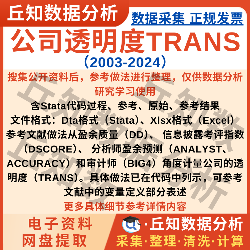 【高级数据】上市公司透明度2024-2003年TRANS综合指标数据含Stata过程原始Do
