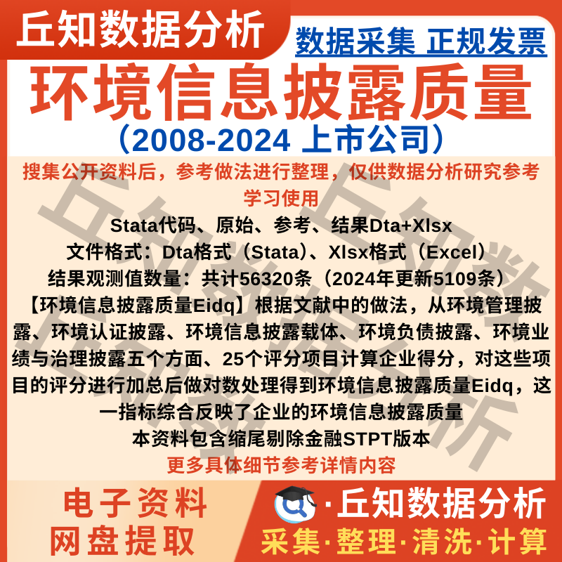 【高级数据】企业环境信息披露质量数据Eidq2024-2008Stata代码上市公司含剔除