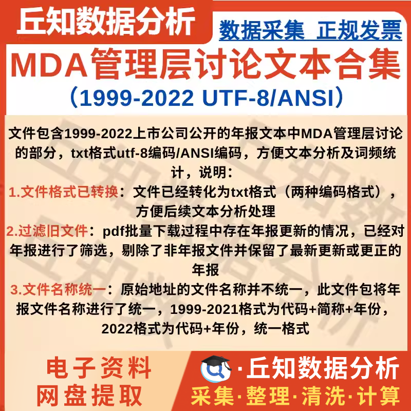 【普通数据】上市公司年报MDA管理层讨论与分析文本2022-1999 TXT UTF-8/ANSI