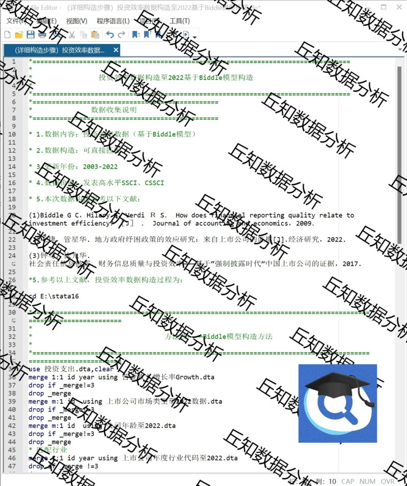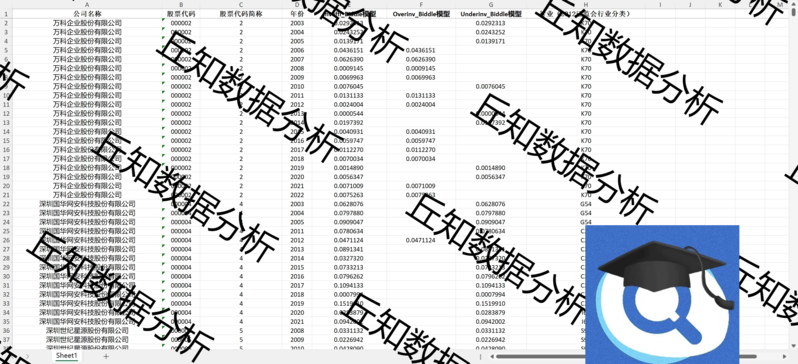 【普通数据】上市公司投资效率Biddle模型数据2022-2003含数据stata代码过程。