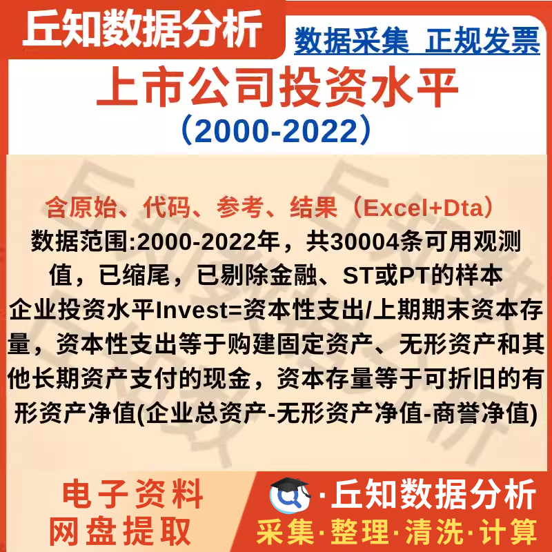 【普通数据】上市公司投资水平数据2000-2022含原始代码参考结果(Excel+Dta)