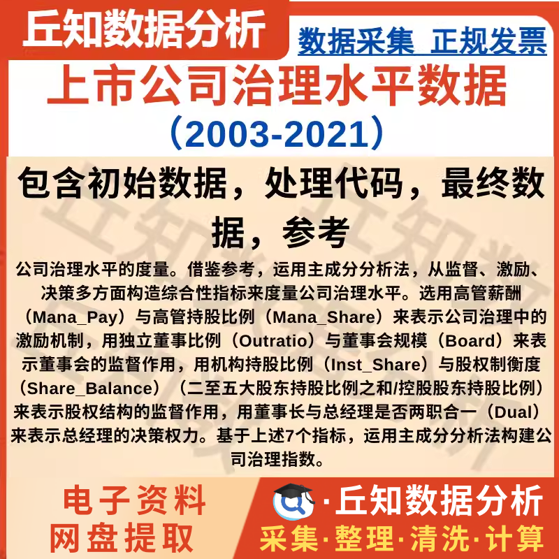 【普通数据】上市公司治理水平数据(2003-2021)含原始数据,代码,结果,参考