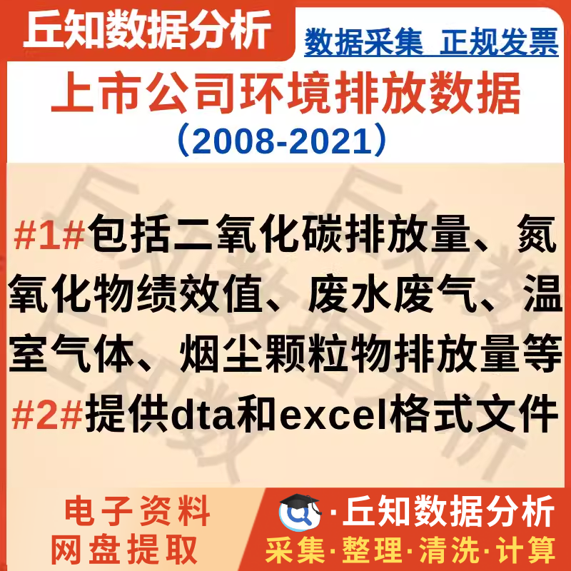 【普通数据】上市公司环境排放数据(2008-2021)面板数据,Excel和Dta stata