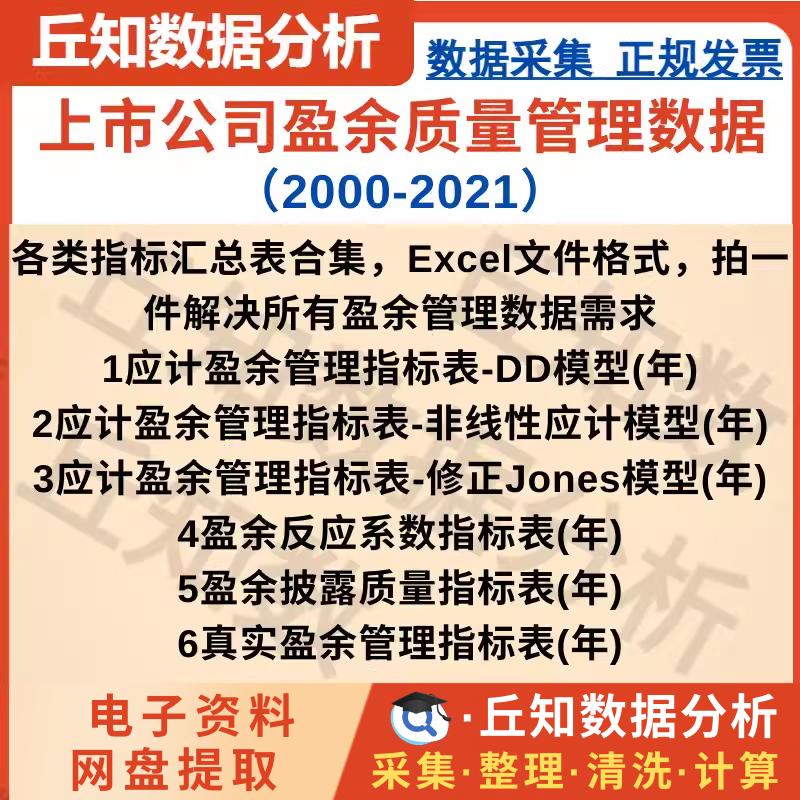 【普通数据】上市公司盈余质量管理数据(2000-2021),汇总表,Excel+Dta格式