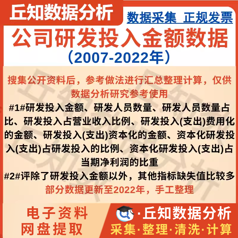【普通数据】上市公司研发投入金额数据(2007-2022)