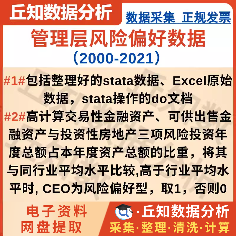 【普通数据】上市公司管理层风险偏好数据2000-2021年 包括Excel,Dta do文档