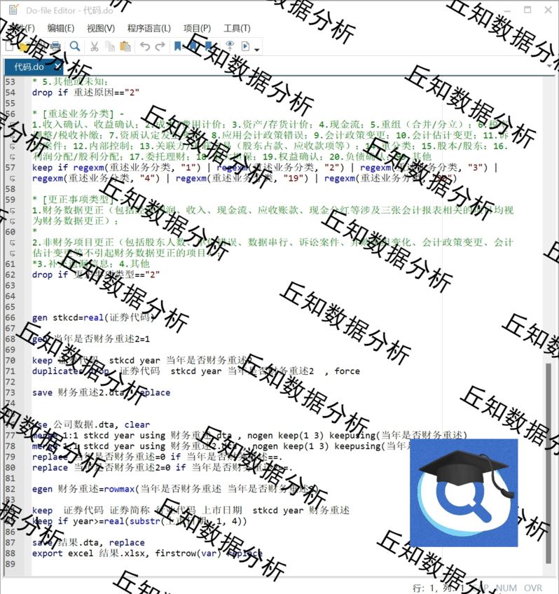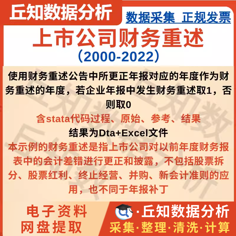 【普通数据】上市公司财务重述指标2022-2000 含stata代码过程 原始 参考 结果
