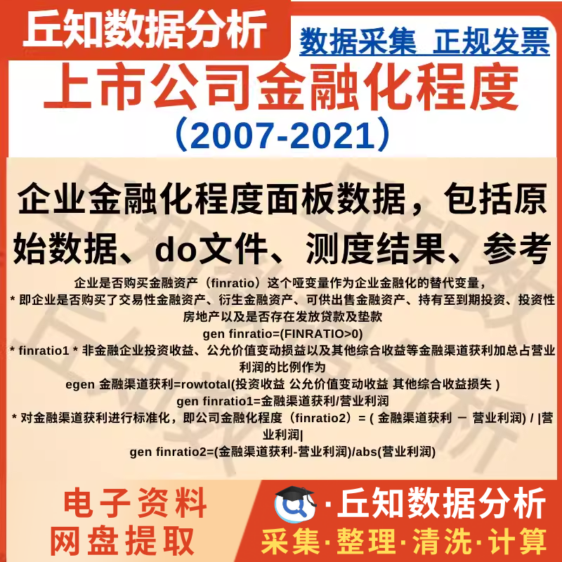 【普通数据】上市公司金融化程度数据2007-2021包括原始、do文件、结果、参考