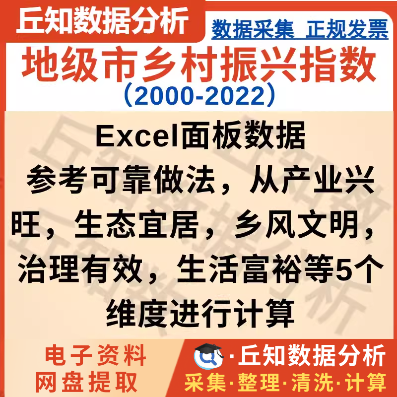 【普通数据】乡村振兴测算数据2000-2022年地级市,Excel面板数据,stata可用