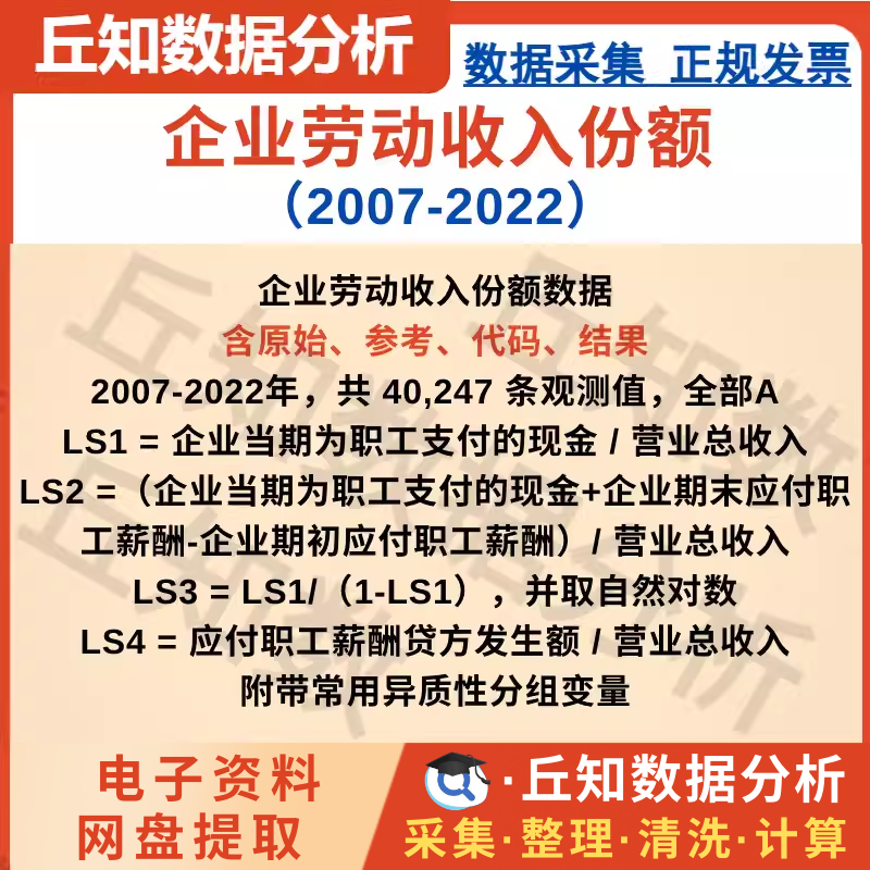 【普通数据】企业劳动收入份额2007-2022上市公司数据,含原始?参考代码结果