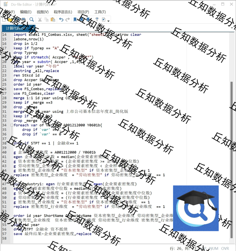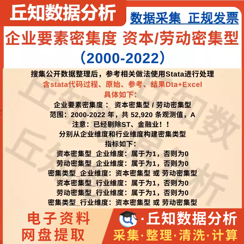 【普通数据】企业要素密集度 资本/劳动密集型2022-2000含stata代码过程 参考