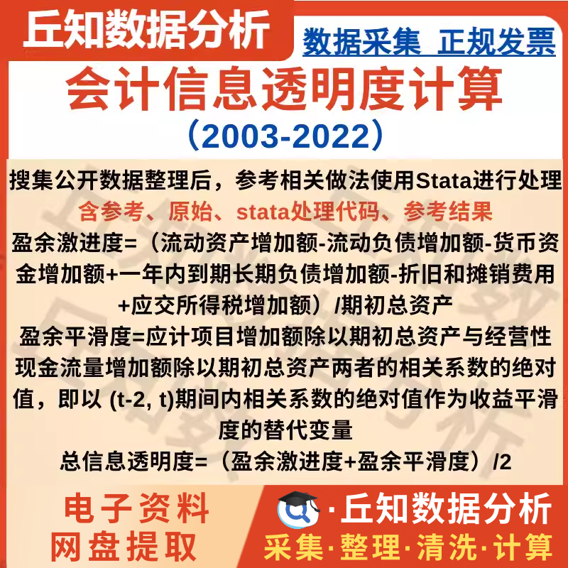 【普通数据】会计信息透明度计算2022-2003盈余激进度 盈余平滑度 含stata代码