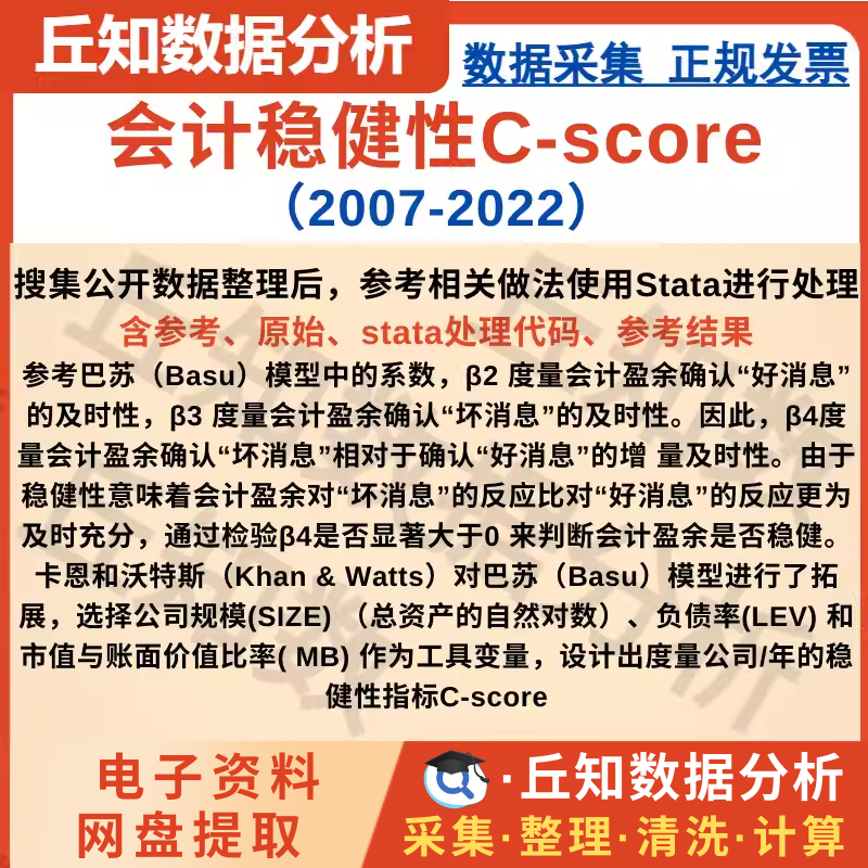 【普通数据】会计稳健性C-score2022-2007 含Stata处理代码 Basu模型拓展 盈余