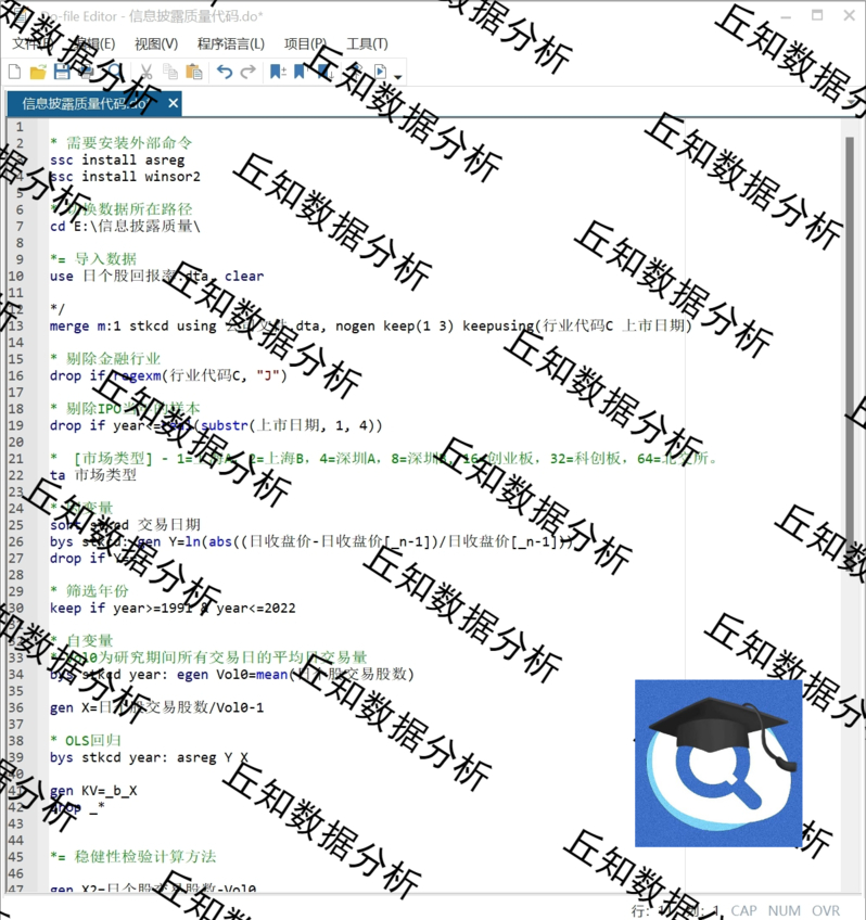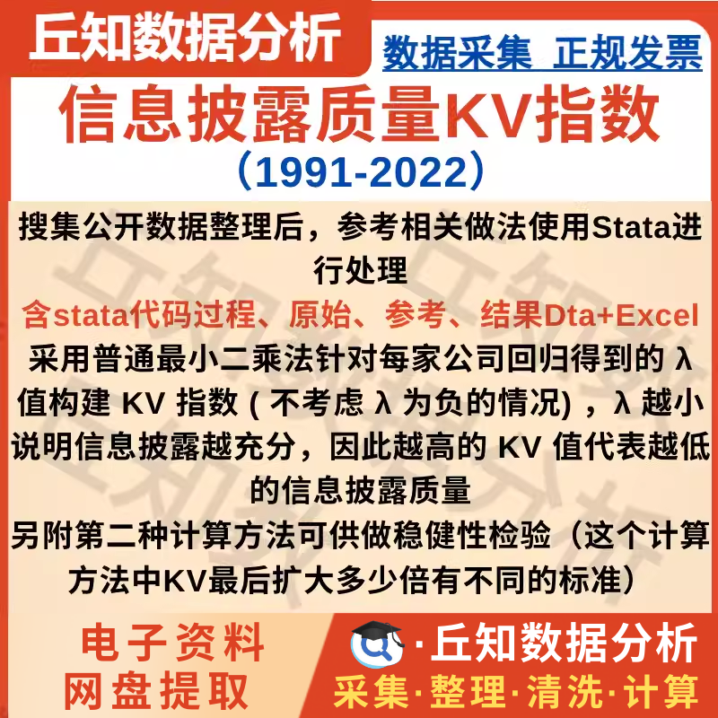 【普通数据】信息披露质量KV指数2022-1991含stata代码过程、原始、参考、结果
