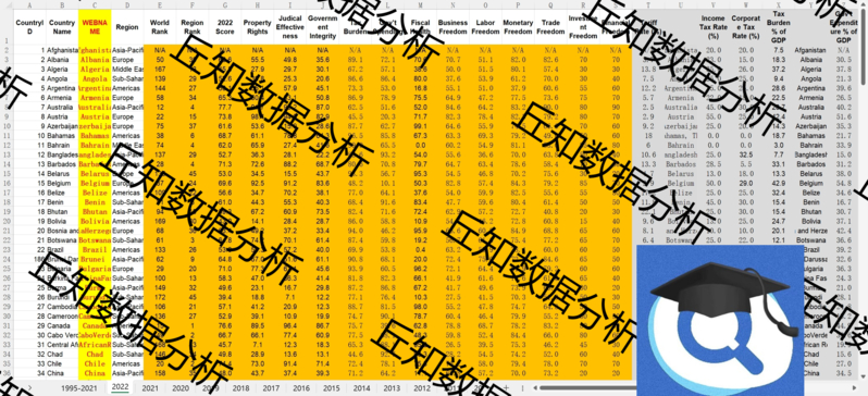 【普通数据】全球经济自由度指数数据整理(1995-2022)截面、面板Excel文件。