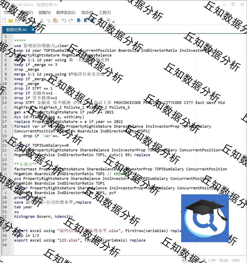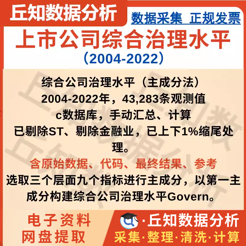 【普通数据】公司综合治理水平2022-2004 主成分分析法含代码、最终结果、参考