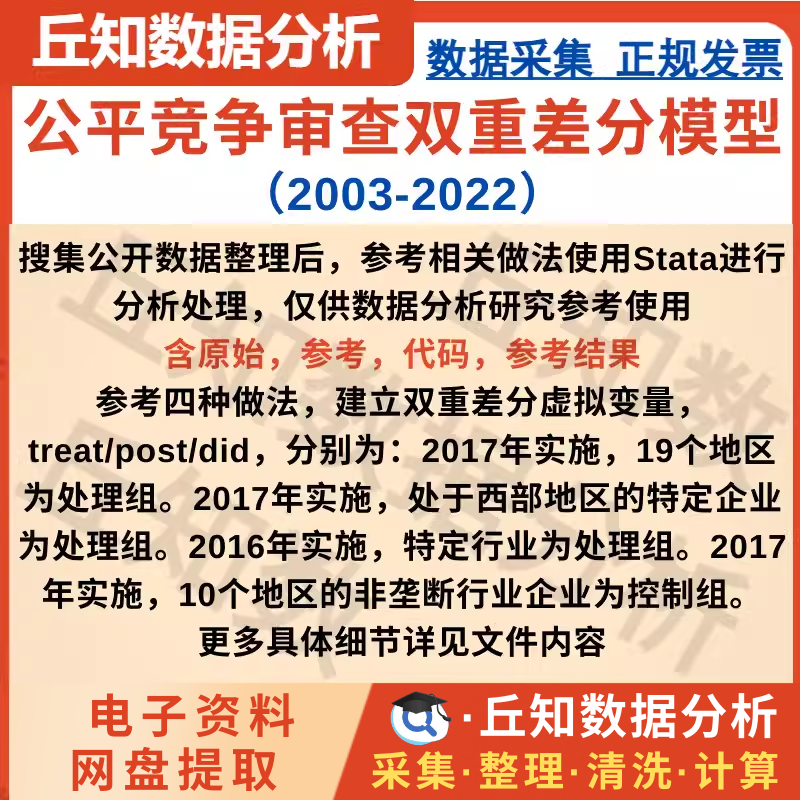 【普通数据】公平竞争审查双重差分模型2022-2003含stata代码原始参考结果表格
