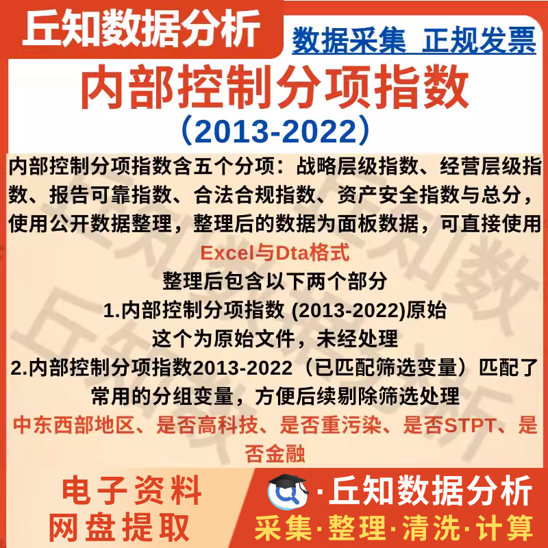 【普通数据】内部控制分项指数2022-2013 含五个分项指数与总分 stata匹配分组