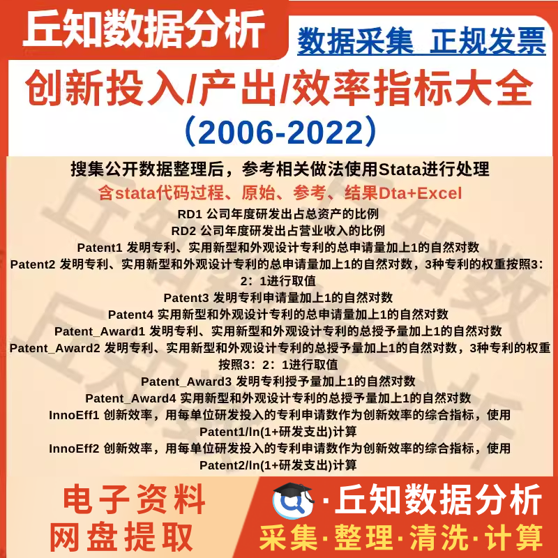 【普通数据】创新投入/产出/效率指标大全2022-2006含stata代码过程参考结果