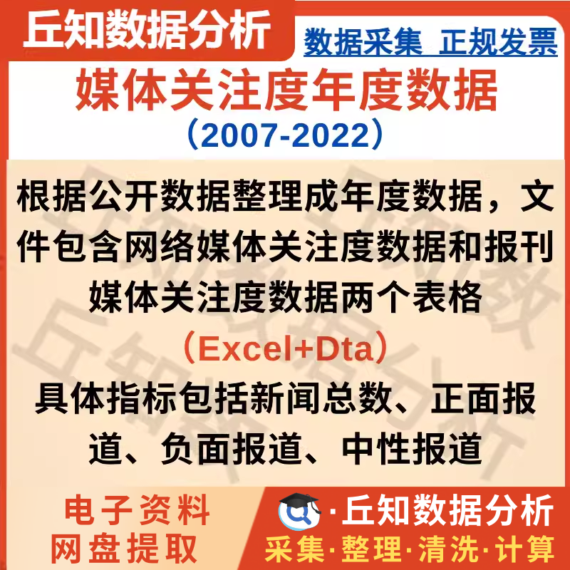 【普通数据】媒体关注度年度数据2007-2022新闻总数正面负面中性stata可用数据
