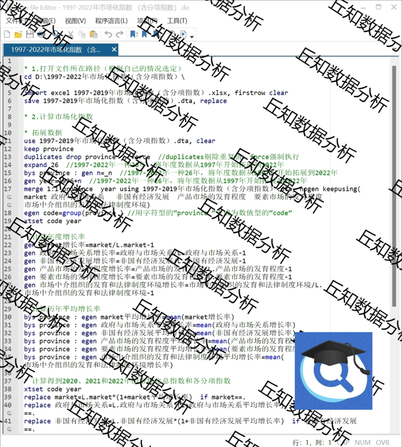 【普通数据】市场化指数数据计算+代码1997-2022,Excel/Dta数据+Stata代码