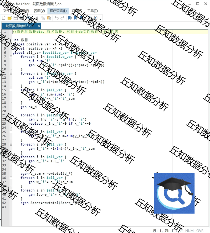 【普通数据】截面数据熵值法数据+代码,Stata代码,Do文档,实证分析命令代码