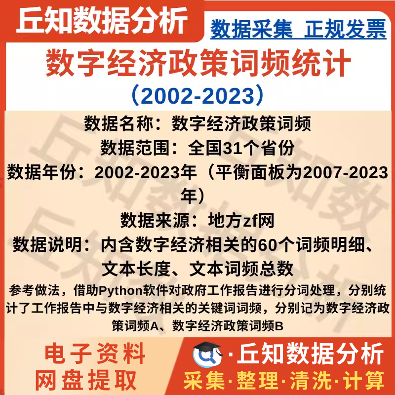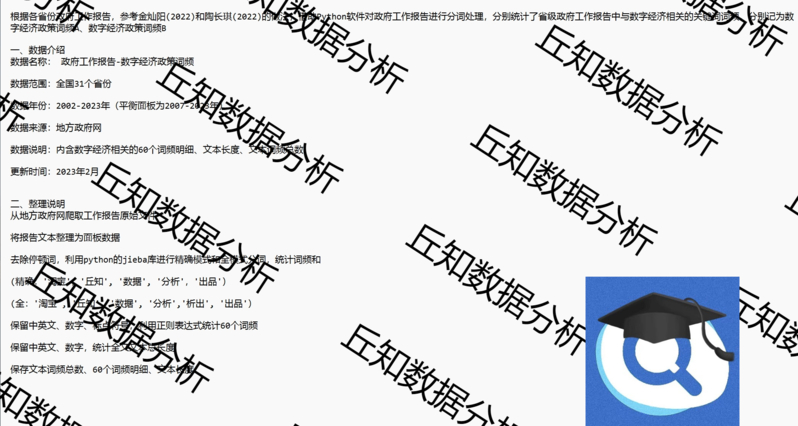 【普通数据】数字经济政策词频统计数据2002-2023年,python词频分析结果面板
