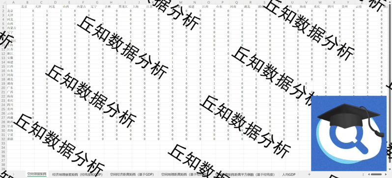 【普通数据】省级空间权重矩阵,01邻接经济地理嵌套经济距离地理距离平方倒数