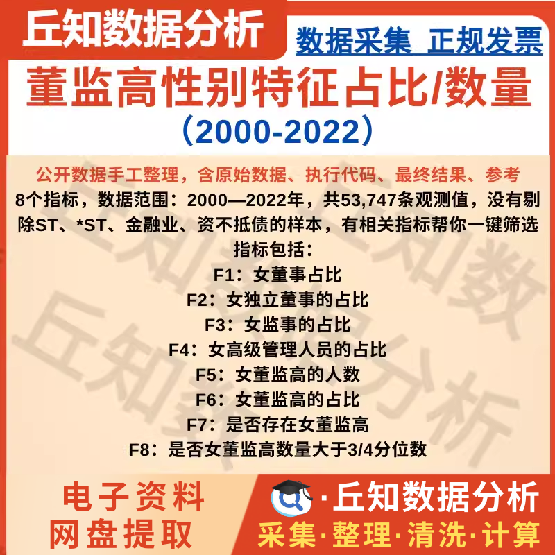 【普通数据】董监高性别特征占比数量2022-2000公开数据8项stata代码结果参考