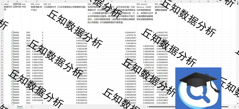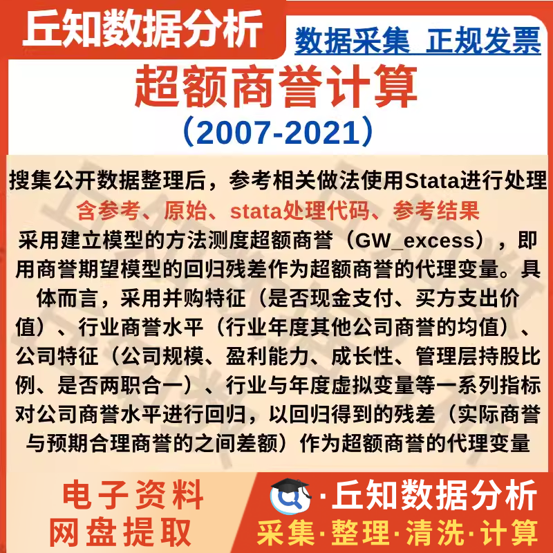 【普通数据】超额商誉计算2007-2021经行业中位数 均值调整超额商誉 stata代码