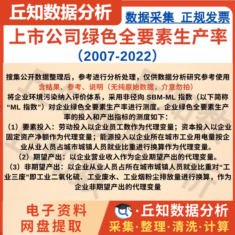 【普通数据】上市公司绿色全要素生产率2022-2007含参考、说明非径向 SBM-ML