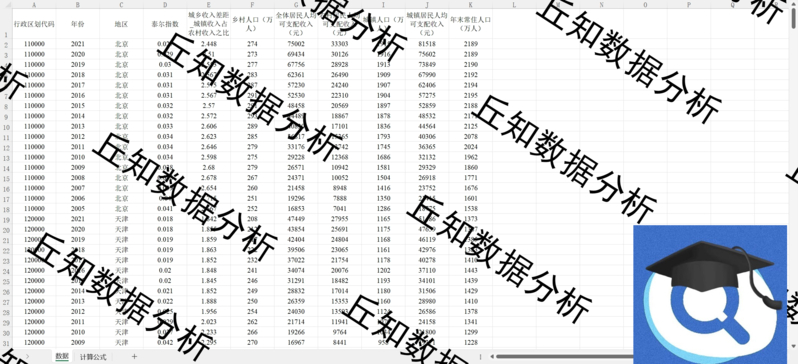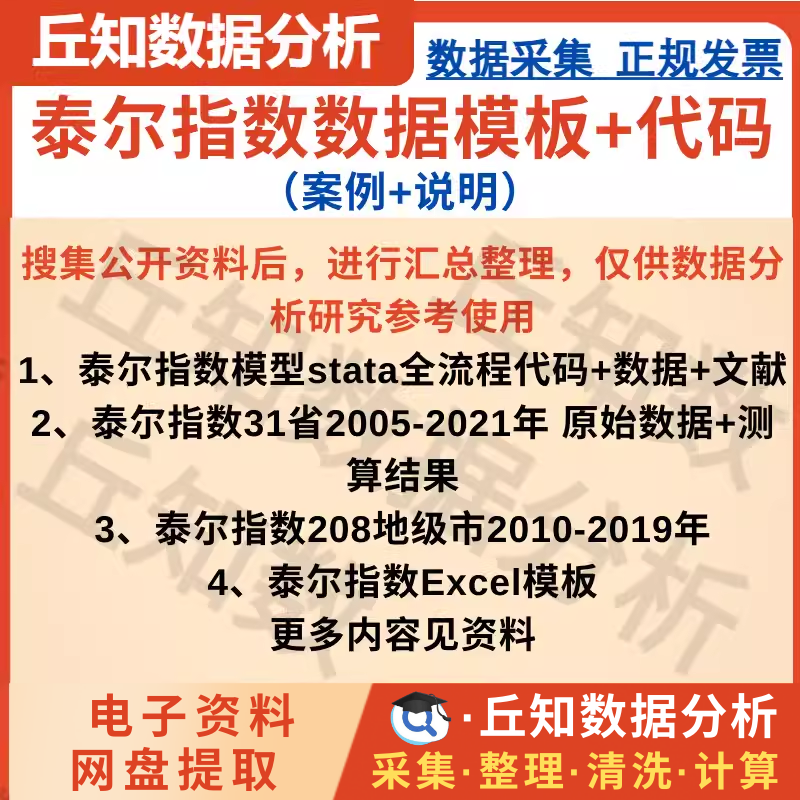 【普通数据】泰尔指数数据模板+代码数据31省2005-2021年208地级市2010-2019年