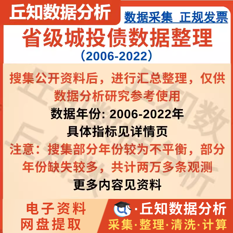 【普通数据】省级城投债数据整理(2022-2006)搜集两万观测分布年份不均衡