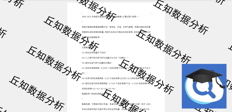 【普通数据】地级市能源消耗数据2021-2006年(原始数据+计算过程+结果说明)