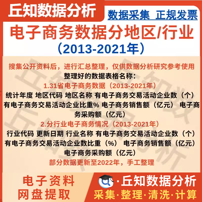 【普通数据】电子商务数据分地区/行业2021-2013年业务企业数量占比采购销售额