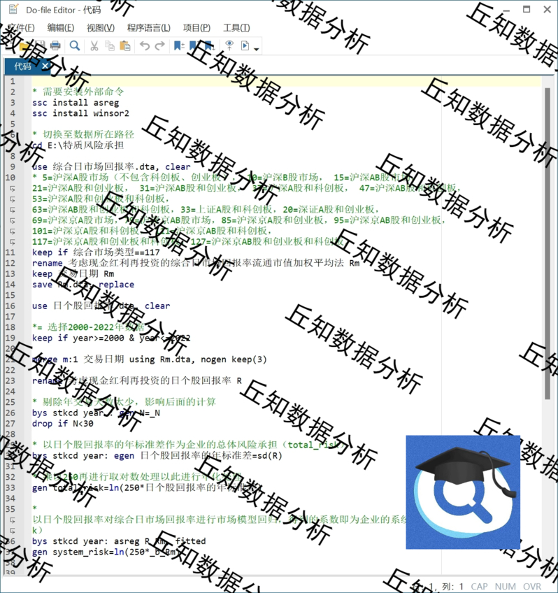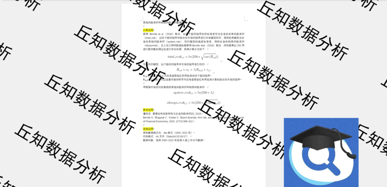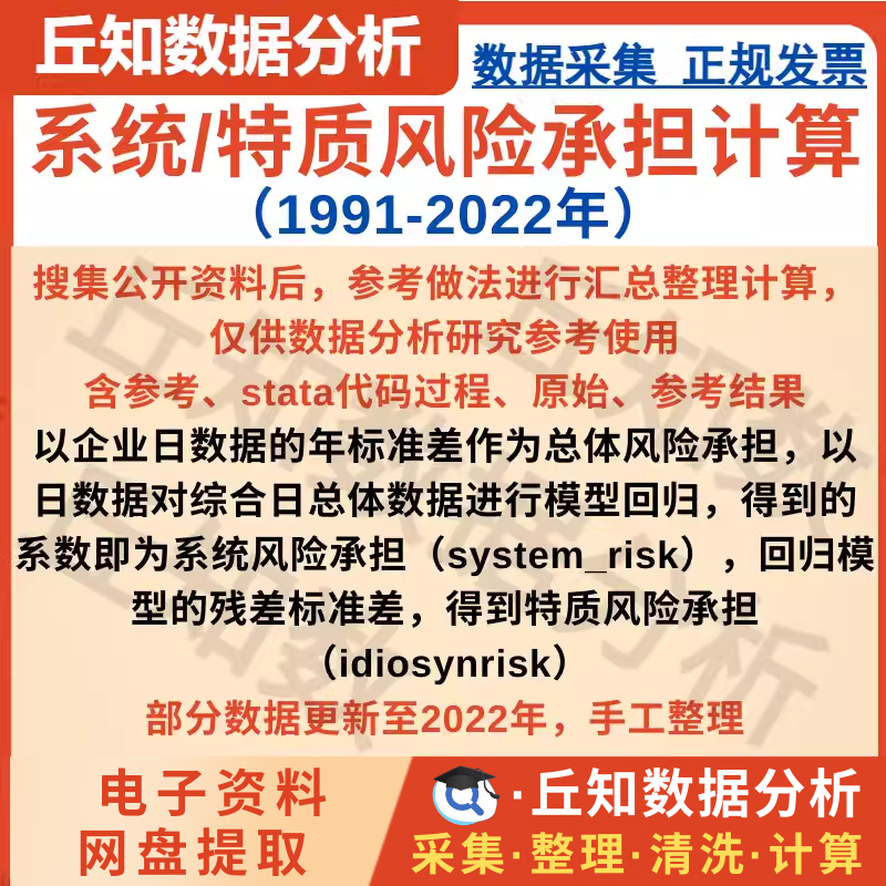 【普通数据】系统/特质风险承担计算2022-1991含stata代码过程模型系数残差
