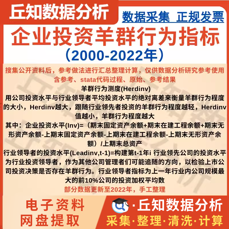 【普通数据】企业投资羊群行为指标2022-2000含stata代码过程、投资水平的离差