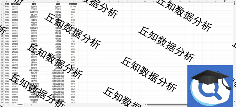 【普通数据】城市/产业创新指数面板整理2021-2001 Dta/Excel面板数据格式整理