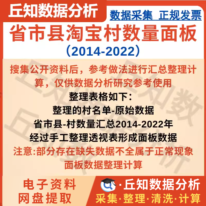 【普通数据】省市县淘宝村数量2022-2014面版数据整理整理原始数据 透视表形成