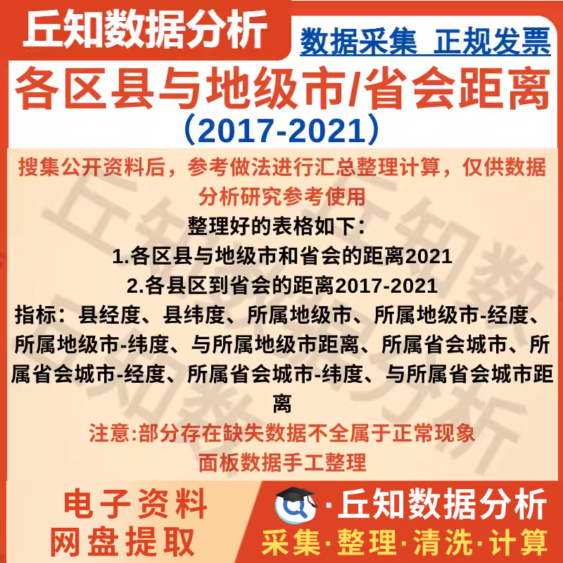 【普通数据】各区县与地级市/省会距离2021-2017面板数据整理含原始经纬度数据