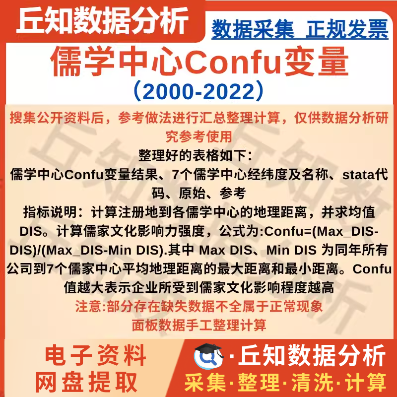【普通数据】儒学中心Confu变量2022-2000可作为工具变量 含stata代码原始经纬