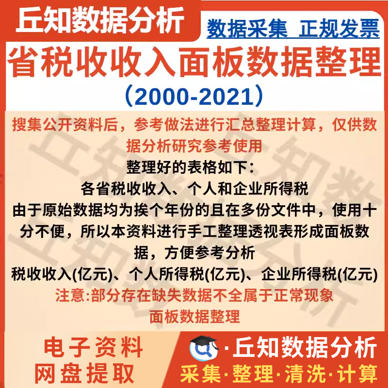 【普通数据】省税收收入面板数据整理2021-2000 个人/企业所得税 数据面板透视