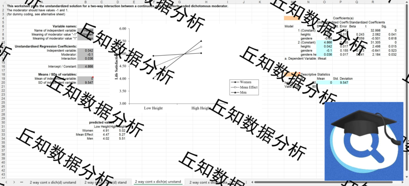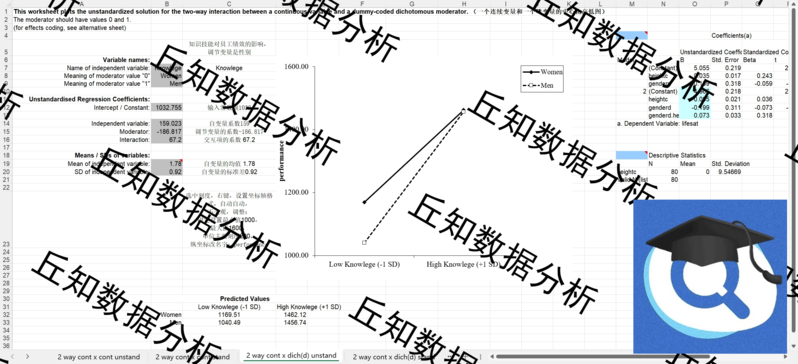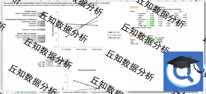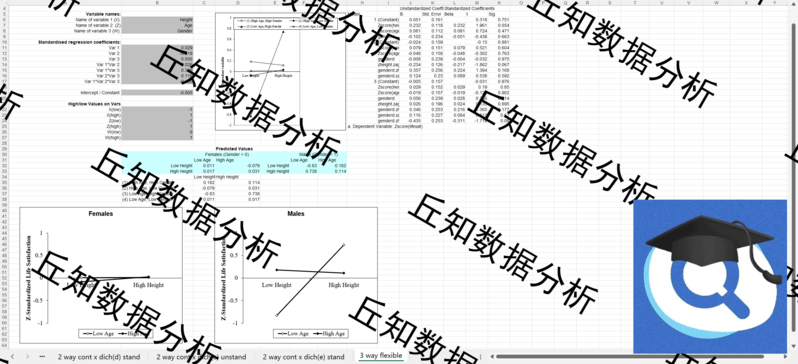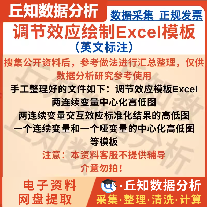 【普通数据】调节效应绘制Excel模板英文标注变量中心化高低图交互效应标准化