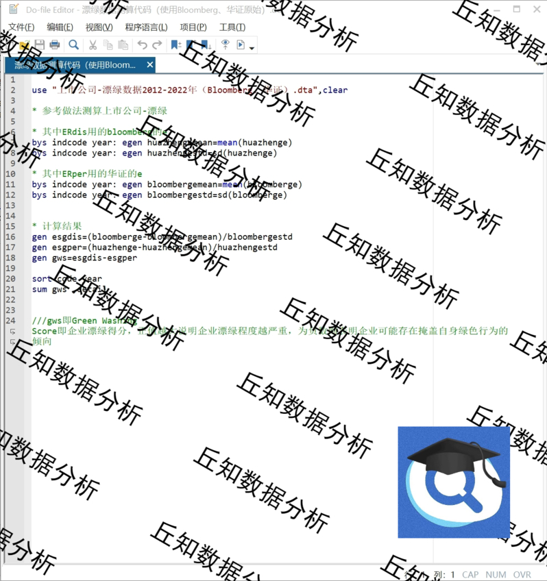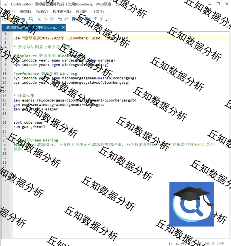 【普通数据】企业漂绿Green Washing Score计算2022-20122种方式Stata计算代码