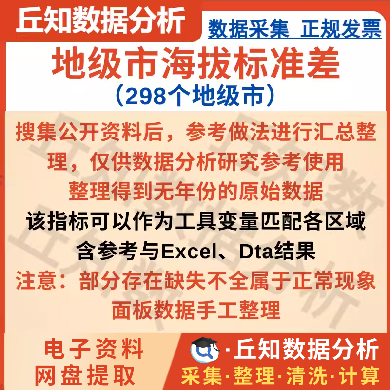 【普通数据】地级市海拔标准差(298个地级市)无年份序列数据Excel、Dta格式