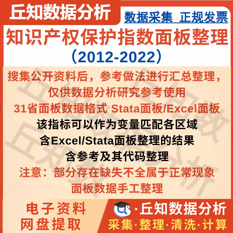 【普通数据】知识产权保护指数面板整理(2022-2012)31省面板整理Stata/Excel