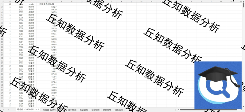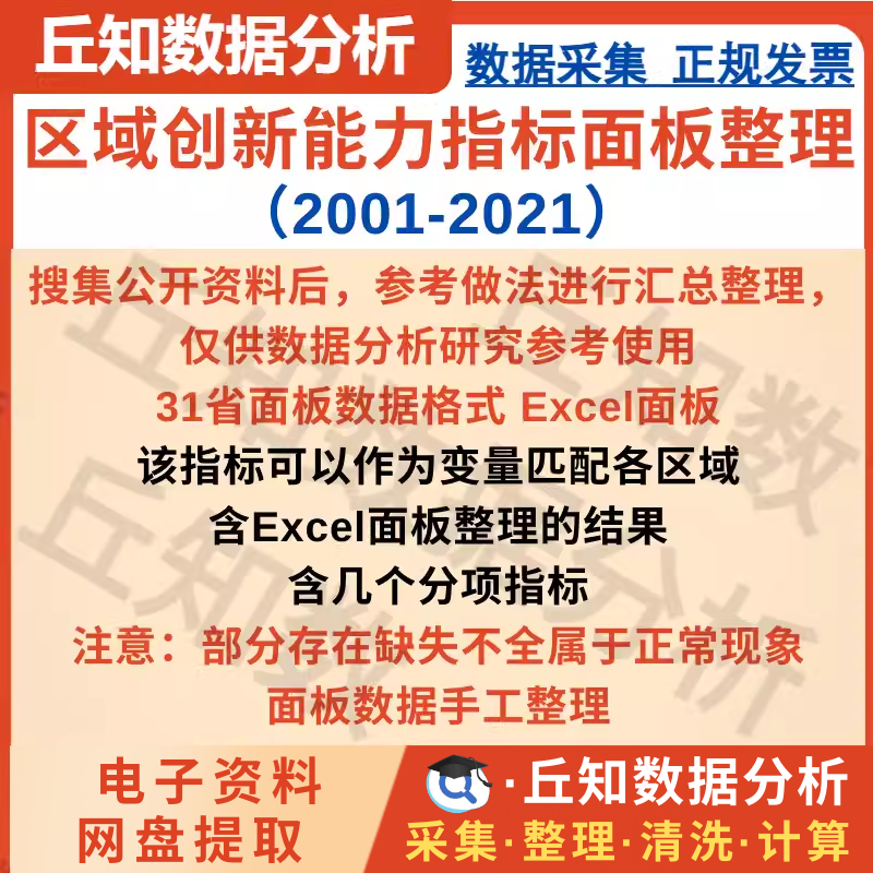 【普通数据】区域创新能力指标面板整理2021-2001 31省面板数据格式 Excel面板