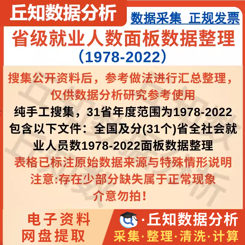 【普通数据】省级就业人数面板数据整理(1978-2022) Excel内含来源说明解释