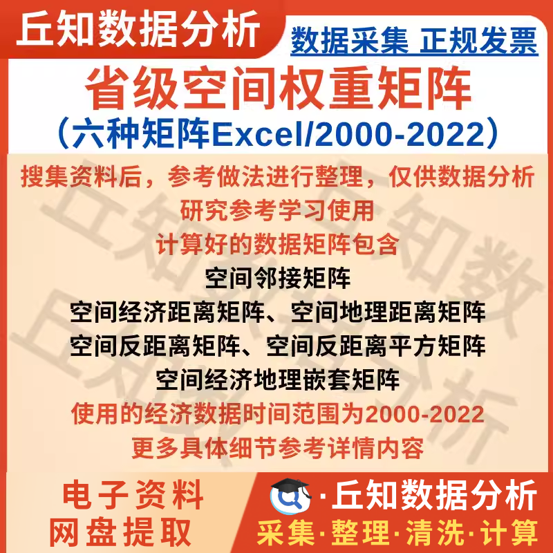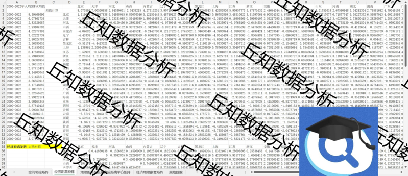 【普通数据】省级空间权重矩阵Excel/2000-2022邻接经济地理嵌套反距离/平方